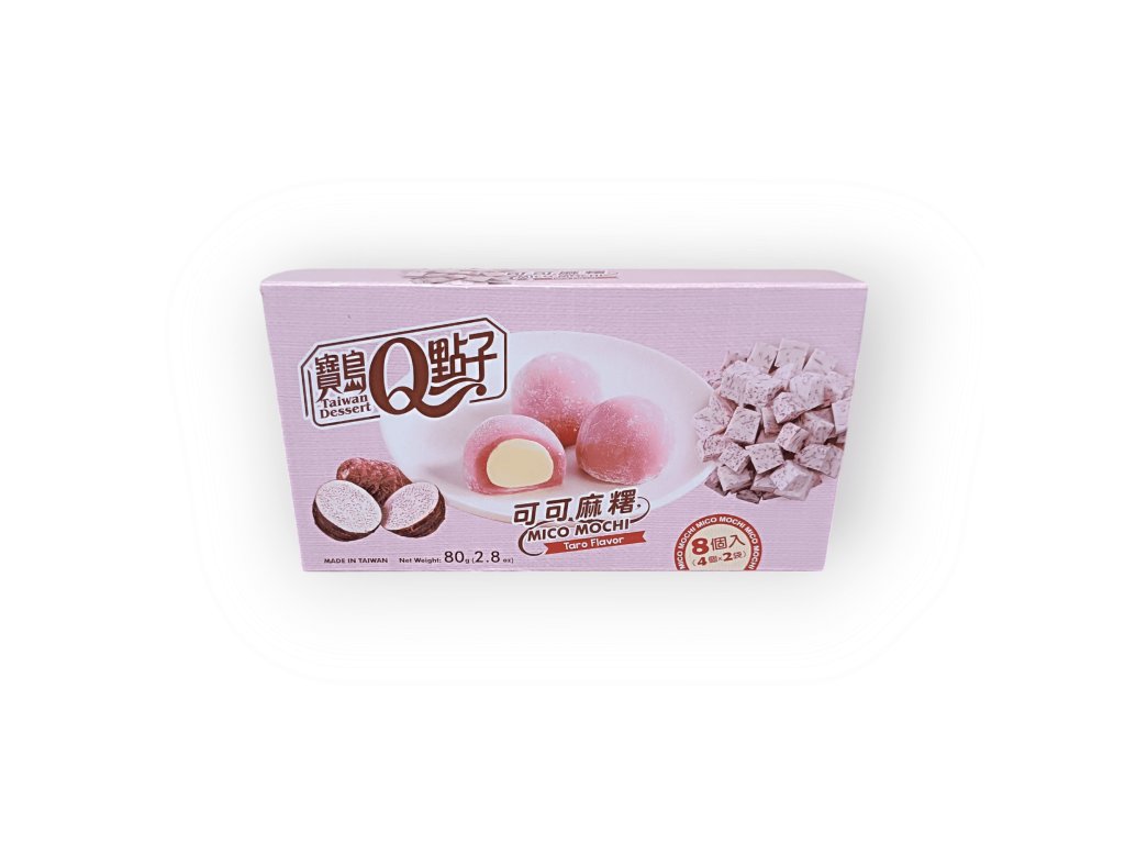 Cacao Mochi s příchutí taro TAIWAN DESSERT představují tradiční tchajwanský dezert, který spojuje jemné rýžové těsto s kakaovou náplní a exotickou chutí taro – oblíbené fialové hlízy s jemně oříškovým aroma. Díky měkké, žvýkavé konzistenci a harmonické sladkosti si mochi rychle získají vaše chuťové pohárky. Skvělé k čaji, kávě nebo jako elegantní dezert po jídle.