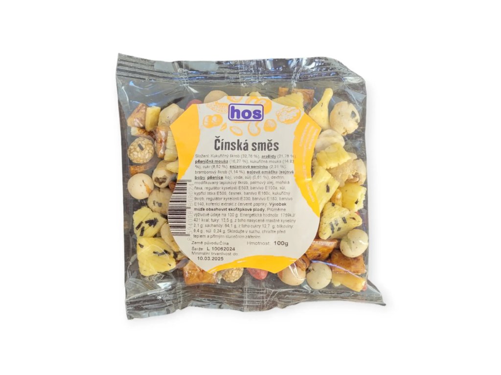 Naše čínská směs crackery je unikátní kombinací východních chutí a vůní. Složena z kukuřičného a pšeničného škrobu, kukuřičné a pšeničné mouky, sezamových semínek a arašídů, tato směs vytváří perfektní harmonii chutí. Sezamová semínka poskytují jemnou a křupavou texturu, zatímco arašídy přináší intenzivní ořechovou chuť