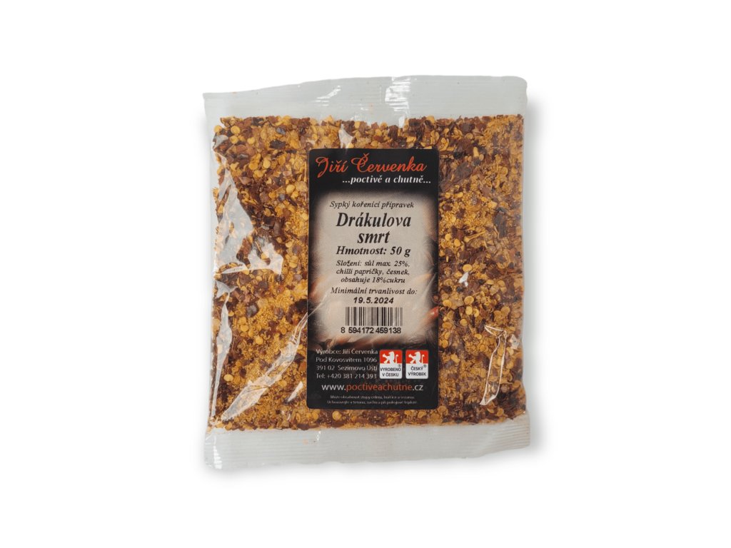 Už jen název Drákulova smrt vypovídá o chuti této velmi ostré směsi koření. Použijte ji například k dochucení omáček, gulášů, mas a jiných pokrmů, které máte rádi ostré.