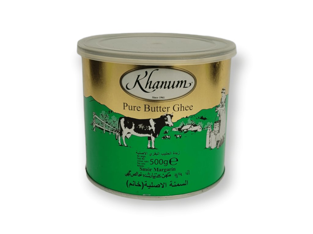 Khanum Máslové ghí je produkt tradiční indické kuchyně, který se vyrábí z másla z býčího nebo kravského mléka. Ghí se vyrábí předehřátím máslové hmoty a následným oddělením tuku od vody a bílkovin. Výsledkem je koncentrovaný tuk s vysokým obsahem tuku a nízkým obsahem vlhkosti.