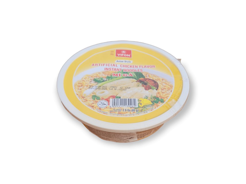 VIFON kuřecí polévka v misce přináší poctivou chuť tradičního kuřecího vývaru doplněnou o lehce pikantní koření. Díky praktickému balení v misce si ji můžete připravit kdykoli a kdekoli – stačí zalít horkou vodou, počkat 3 minuty a lahodná polévka je hotová. Jemné pšeničné nudle a aromatický vývar tvoří vyváženou kombinaci chutí, která zasytí a potěší.