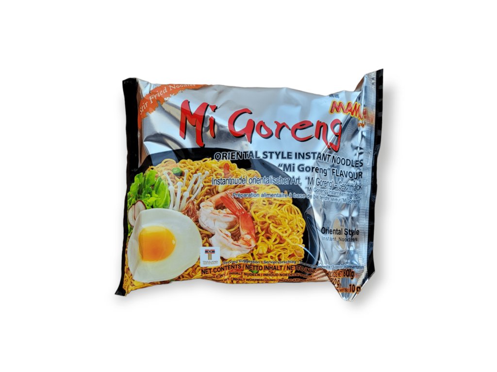 MAMA Mi Goreng nabízí autentickou chuť indonéských smažených nudlí v pohodlném instantním balení. Jemné pšeničné nudle se po zalití horkou vodou promíchají s kořenící směsí, olejem a sušenou zeleninou, čímž vznikne lahodná kombinace sladkých, slaných a mírně pikantních chutí. Ideální jako rychlý oběd, večeře nebo svačina doma či na cestách.