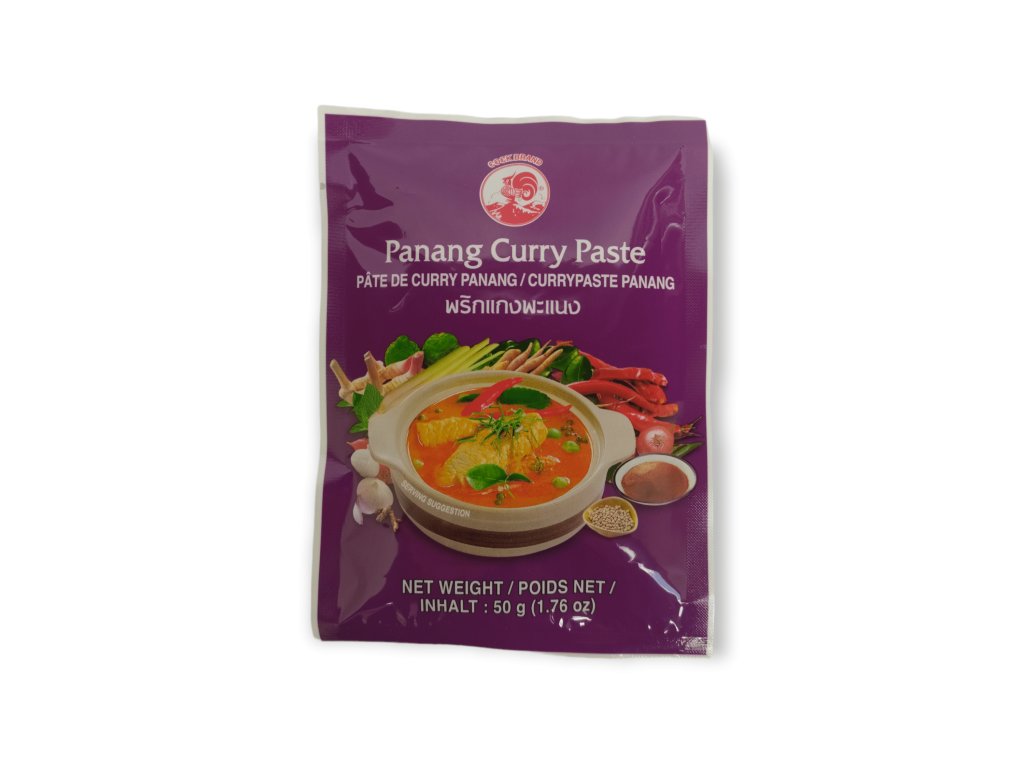 Objevte harmonii thajských chutí s Panang kari pastou COCK BRAND – tradiční směsí, která spojuje jemnost, lehce sladkou chuť a příjemnou pikantnost. V Thajsku známá jako Kaeng Panang, tato kari pasta je oblíbená pro svou krémovou konzistenci, výraznou vůni citronové trávy, galangy a kafrové limety.