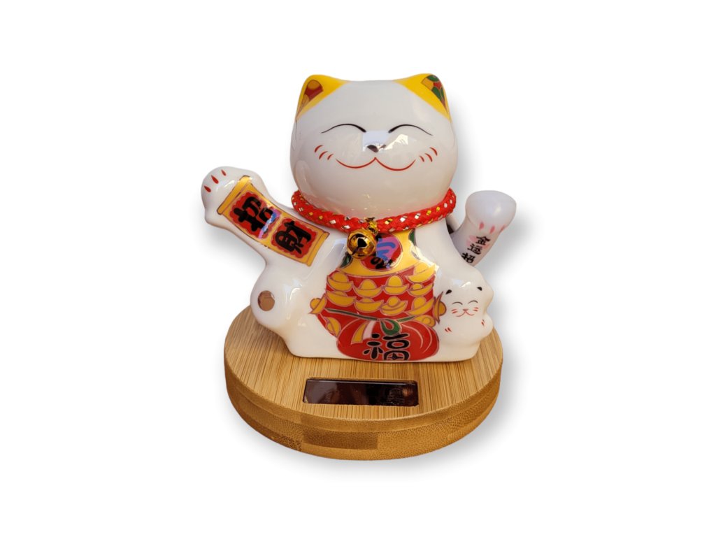 Porcelánová figurka Maneki Neko (japonsky „mávající kočka“) je oblíbený symbol štěstí, hojnosti a úspěchu. Tato solární varianta s jemným máváním tlapky při dopadu světla působí nejen dekorativně, ale také přináší pozitivní atmosféru a harmonii do vašeho prostoru.