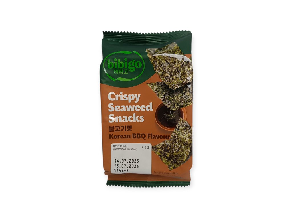 BIBIGO pražené řasy s BBQ příchutí kombinují přirozenou umami chuť mořských řas s kouřovým aroma korejského BBQ. Tento lehký a křupavý snack je ideální pro rychlou svačinu, přidání do salátů, rýžových pokrmů nebo nudlí. Řasy jsou nízkokalorické, bohaté na vitamíny a minerály a představují zdravou alternativu k chipsům.