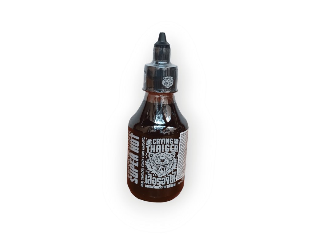 Sriracha Super Hot Crying Thaiger je thajská omáčka, která posouvá pálivost na novou úroveň. Díky vysokému obsahu červených chilli papriček (až 70 %) a přidanému oleoresinu capsicum má tato omáčka výraznou chuť i intenzivní ostrost. Skvěle se hodí k masu, nudlím, asijským pokrmům nebo jako pálivý doplněk do omáček, marinád a polévek.