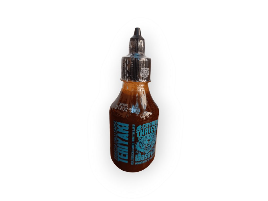 Sriracha Teriyaki chilli omáčka CRYING THAIGER je lahodná kombinace tradiční thajské srirachy a sladko-slaného teriyaki. Jemná pálivost červeného chilli je perfektně vyvážena karamelovým nádechem cukru a umami chutí sójové omáčky. Skvěle se hodí jako marináda na maso, glazura na grilování, nebo omáčka k asijským pokrmům a sushi.