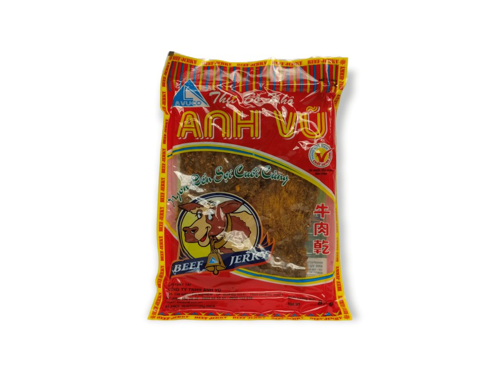 Sušené hovězí maso AVUCO je vyrobeno z kvalitního hovězího masa (72 %) a dochuceno cukrem, solí, česnekem, chilli a kořením. Snack je lehce pikantní a vhodný jako rychlá svačina na cesty, do práce nebo jako doplněk k oblíbeným pokrmům. Díky tradičnímu způsobu sušení si maso zachovává svou přirozenou chuť.