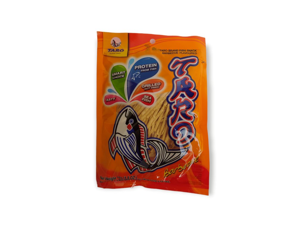 Rybí snack z pečených a sušených rybích proužků patří v Thajsku mezi nejoblíbenější svačiny. Taro Bbq rybí snack je připraven ke konzumaci a je perfektní svačinou kdykoli a kdekoli. Solená ryba má výraznou rybí chuť s grilovacím aroma, lehce žvýkací konzistenci a chutná lahodně s pivem místo chipsů. Lze smažit nebo připravit v mikrovlnné troubě (2 minuty).