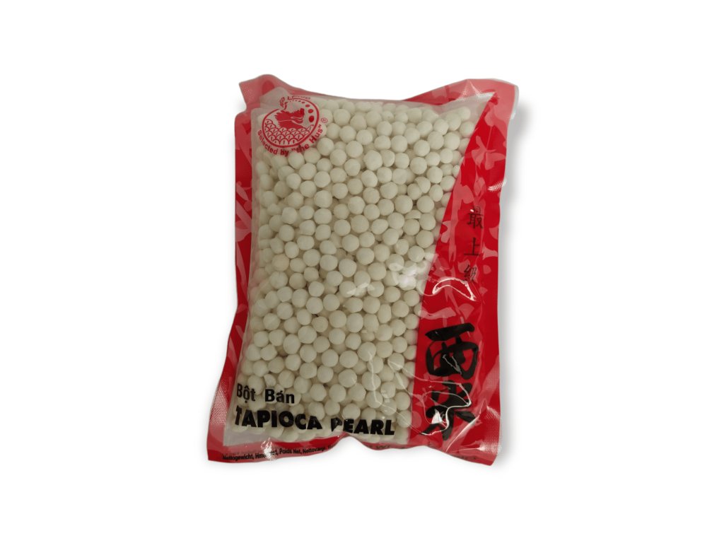 apioka perly velké bílé RED DRAGO 400 g jsou vyrobeny z tapiokové mouky, která pochází z kořene manioku. Jsou bohatým zdrojem zdravých sacharidů bez cholesterolu a nezdravých tuků, obsahují vápník, fosfor, draslík a hořčík, a jsou přirozeně bezlepkové – ideální pro bezlepkovou stravu.