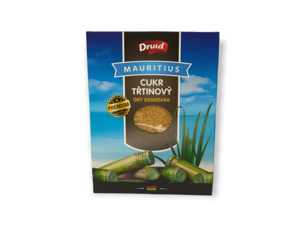 Třtinový cukr světlý hrubý DRUID pochází z tropického ostrova Mauricius, kde se pěstuje cukrová třtina nejvyšší kvality. Cukr se získává šetrným procesem sedimentace a filtrace bez chemické rafinace, díky čemuž si zachovává přirozený obsah melasy a s ní i svou autentickou karamelovou chuť a jantarově zlatou barvu.