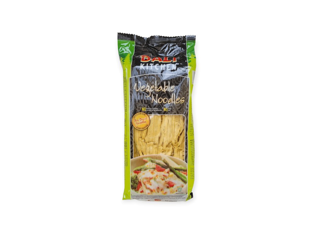 Zeleninové nudle jsou tradiční asijské pšeničné nudle obohacené o přírodní zeleninové přísady – mrkev, zelené fazole a kurkumu. Díky tomu mají nejen atraktivní barvu, ale i jemně nasládlou chuť. Jsou vhodné do polévek, wok pokrmů, salátů nebo jako příloha k masovým či vegetariánským jídlům. Snadná a rychlá příprava z nich dělá ideální volbu pro milovníky lehké a zdravé asijské kuchyně.